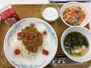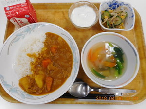 ポークカレー わかめサラダ 青菜のスープ ヨーグルト |