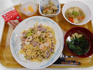ごはん いかのチリソース煮 野菜五目炒め 中華スープ ぶどうゼリー |