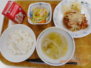 ごはん イタリアンハンバーグ 粉ふき芋 フレンチサラダ 白菜とえのきのスープ |