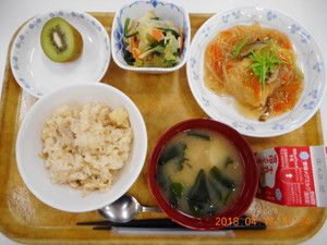 筍ごはん 揚げ豆腐の野菜あんかけ くるみ和え みそ汁 果物 |