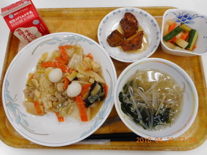 中華丼 中華漬け わかめスープ 大学芋 |