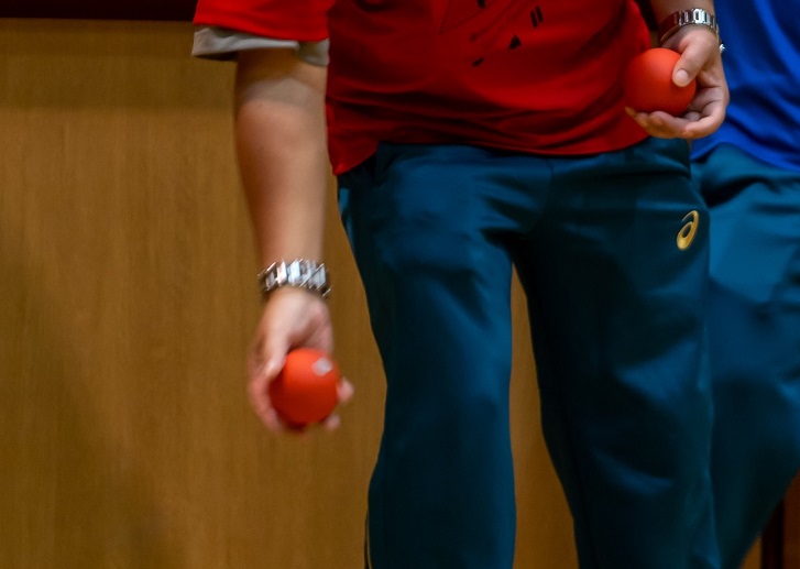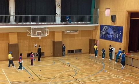 黄組(1,3年)と青組(2,4年)の組対抗で、インディアカ・ボッチャ・ドッジボールを行い、青組が優勝に輝きました。