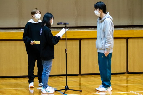 生徒・先生方による出し物や生徒会制作のビデオムービー等で笑いのある会となりました。