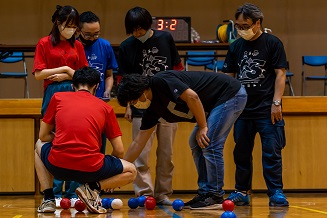 今年度は学年合同のイカ、タコのチームに別れ、ボッチャ、ソフトバレーボール、ドッジボールを行いました。