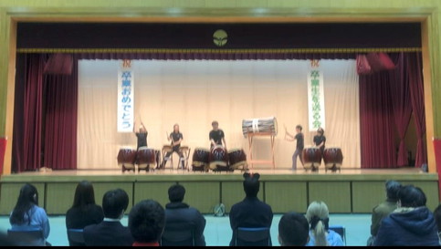 生徒会長による開会の言葉、和太鼓部による演奏、六郷○×クイズ、想い出のスライドショーを上映しました。