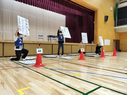 今年は昨年までの書き初め大会ではなく、巨大かるた大会を実施しました。