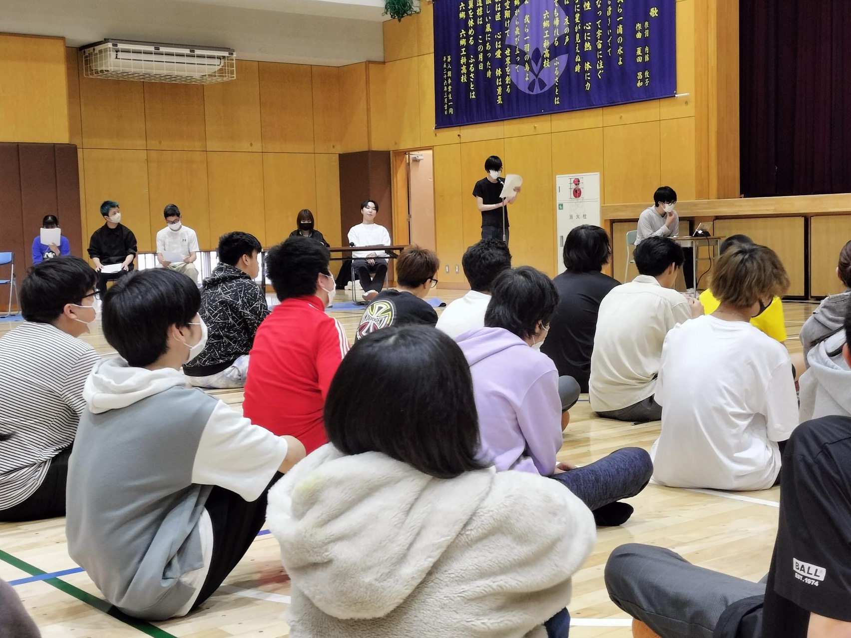 本校体育館にて新入生向けに行事紹介や部活動の実演紹介を行いました。