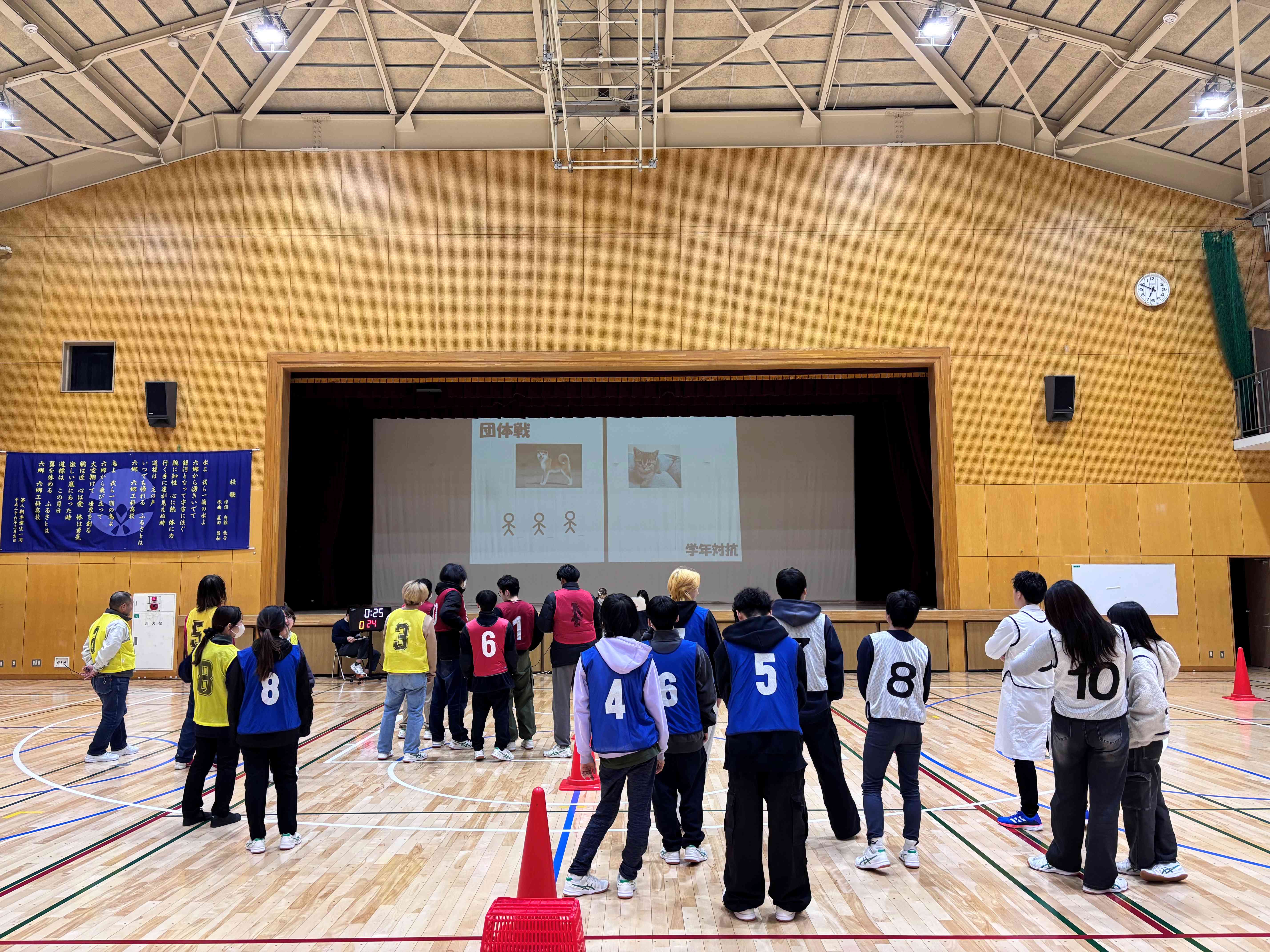 生徒会が作った問題やアンケートをもとに、学年対抗で行いました。