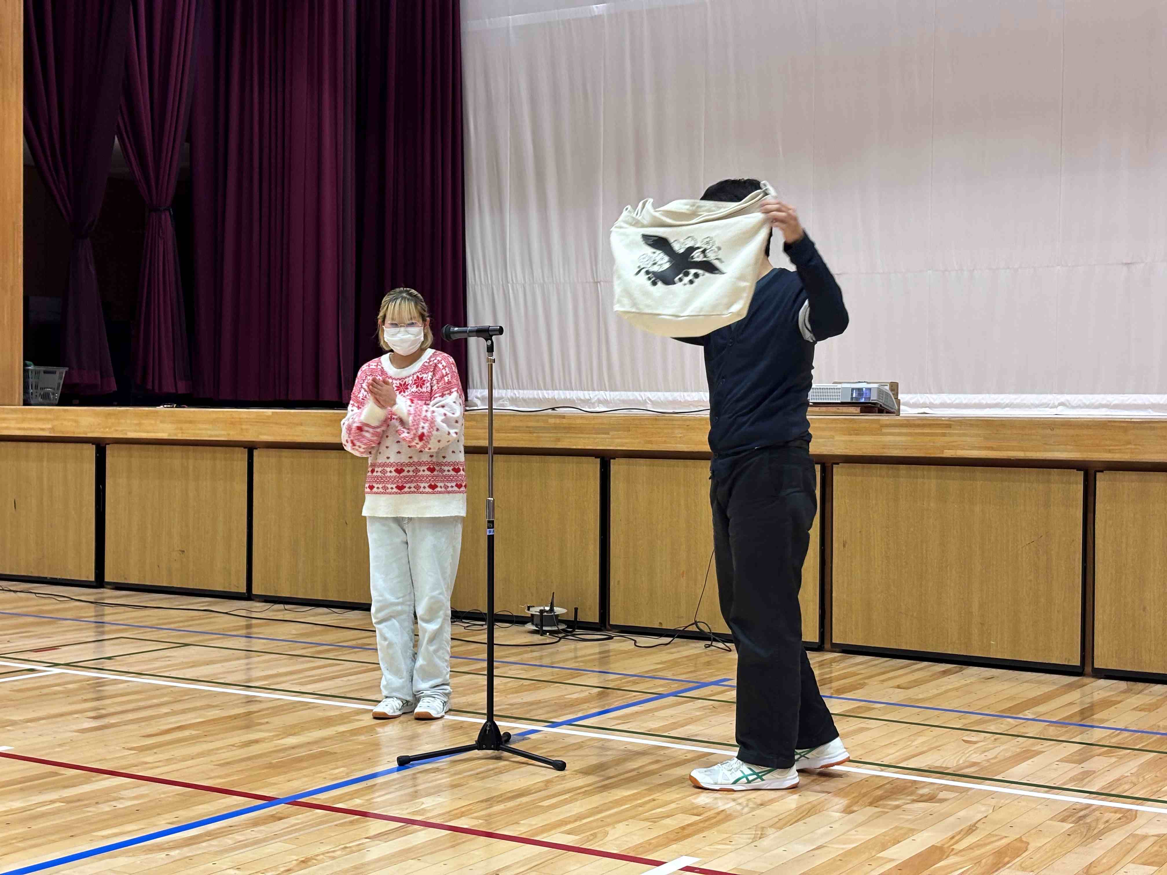 最後に卒業記念品として、オリジナルデザインのバッグとタンブラーとハンカチを贈呈しました。