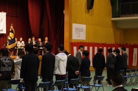 在校生代表と新入生代表のあいさつがあり、お互いが顔を合わせました。