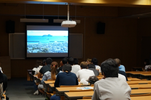 訓練では避難と津波等に関する防災映像を観て学習しました。