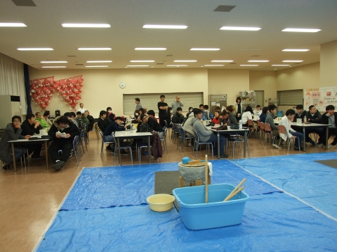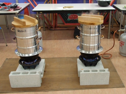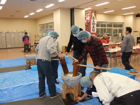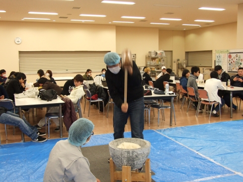 生徒達は自分たちで餅をつき、雑煮やきなこ、あんこ等好みの味にして食べました。