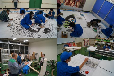 並行して様々な部分のねぷた絵の制作も行っています(左上や右下の写真)。