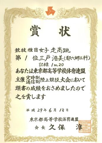 本校からもトラック競技と走り高跳びで生徒が出場し、2年生の三戸浩美さんが見事女子走り高跳びで第1位になり、