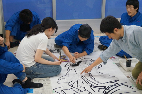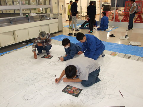 今回は、プロジェクター投影で下絵を投影した下書きの続きと墨入れです。