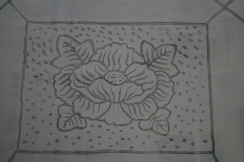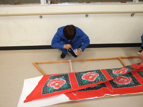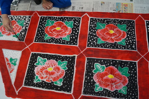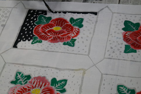 先週ロウ入れまで終わらせた牡丹に、色を入れていきます。