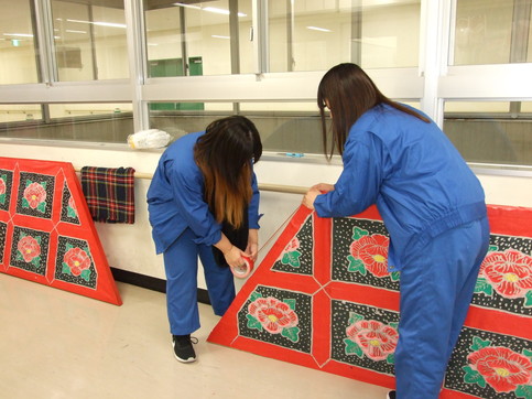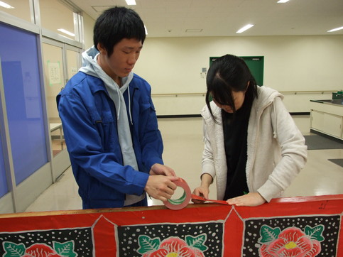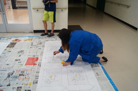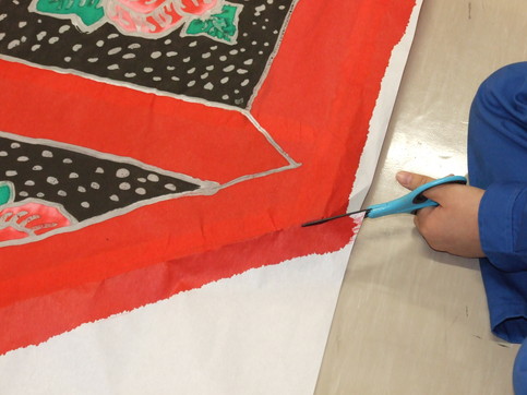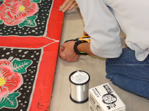 最後に、次週作成予定のねぷた台の縁の和紙を切りました。