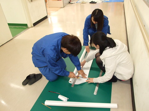 最後に運行時に風であおられないようにテグスで留めたり、周りを赤のテープで補強したりしました。