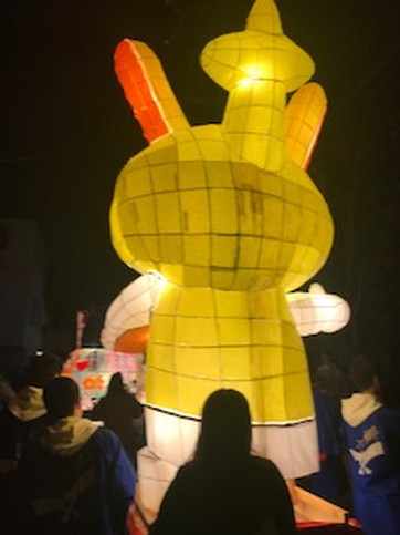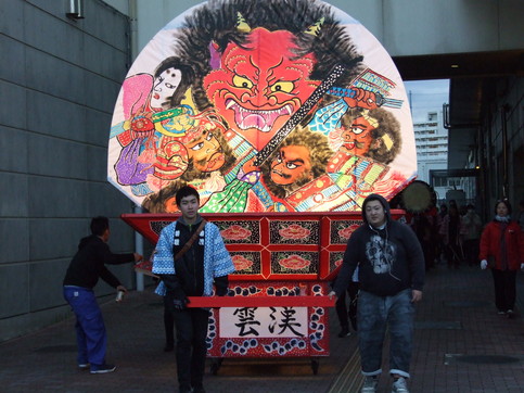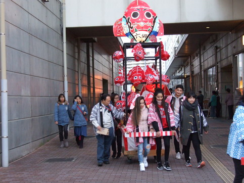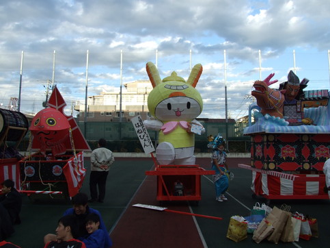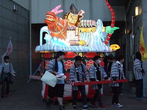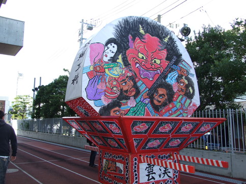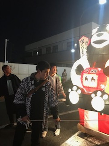 本校からは「くまもん」と羽田空港のゆるキャラ「はねぴょん」のねぶたを運行しました。
