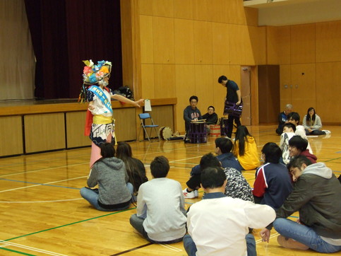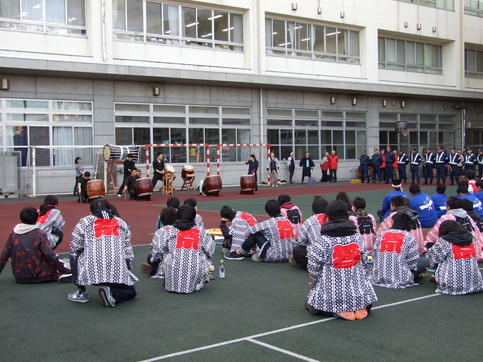 生徒たちは緊張した面持ちで太鼓披露に臨んでいましたが、
