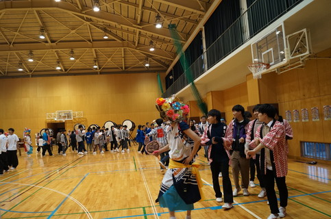 悪天候のため,巡行は中止となり,本校体育館での開催となりましたが,