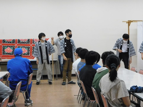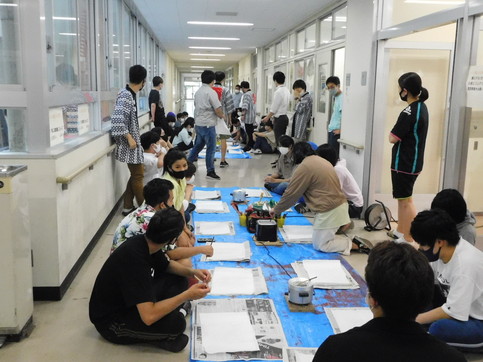 上級生が下級生にねぷたの製作の仕方を説明し、溶かしたろうの筆入から色付まで行いました。