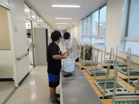 7月19日に全学年一斉に清掃活動を行い、20日に全体集会ののち、通知表が配布されました。