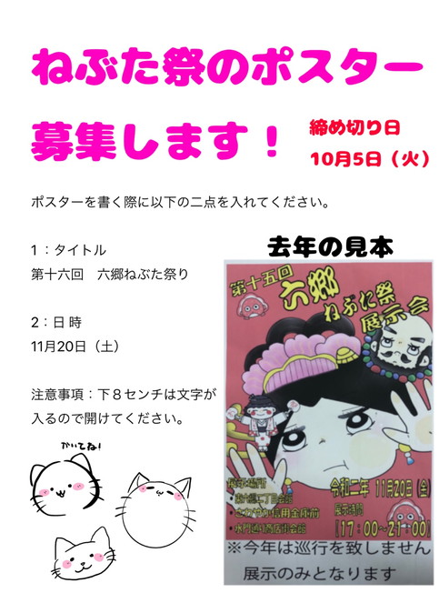 また、ねぷた委員会からポスター作成の募集を行い、各クラスにお知らせを掲示しました。