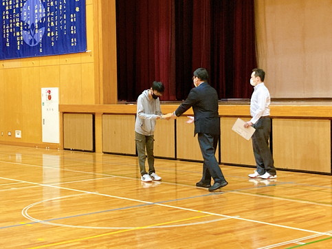 生徒の表彰が行われた後、前期終業式を本校体育館で実施し、締切を厳守することの大切さや後期に向けてのお話がありました。