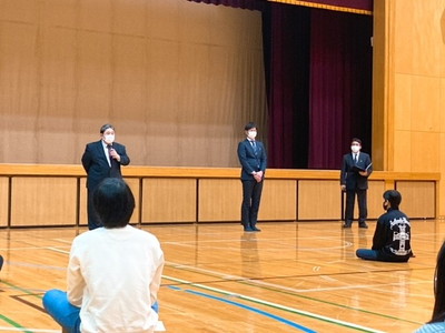 また、今年度をもって本校から異動される先生方からもお話があり、生徒たちは真剣に聞き入っていました。