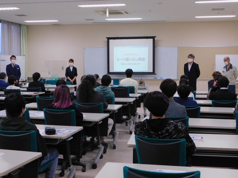 NPO法人glolabと洋服の青山にご協力いただき、スーツ着こなし講座や外国につながる生徒向けにアイスブレイクと日本での働き方についてのお話をいただきました。