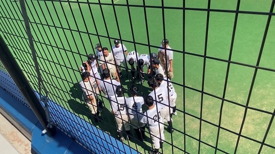 結果は武蔵丘高校に負けてしまいましたが、選手は精一杯頑張りました。三年生が最後にタイムリーを打ってくれたこと。あきらめずに必死でプレーして点を取れたことが良かったです。