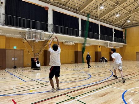普段使用しているゴールに設置することができ、初めてのシュート環境にとても感動しました。短時間で部員全員が体験することはできませんでしたが、体験した生徒はとても楽しく、充実した時間を過ごすことができました。