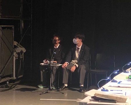 また、今回は大会運営を手伝う生徒委員として、同じく本校軽音楽部の1年生2名が顧問と一緒に大会の司会を務めました。発表が進むにつれ少しずつ司会のやり方にも慣れ、しっかりと学校・曲紹介をすることができました。他校のバンドの演奏を聴くこともでき、勉強になる貴重な経験をすることができました。