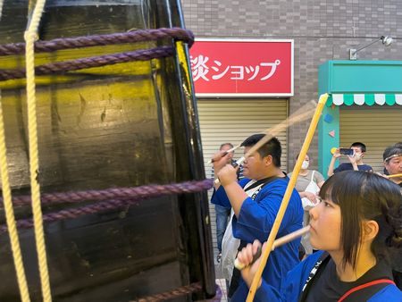 普段は学校で練習していますが、お祭りにて実際に演奏することが大きな経験になります。