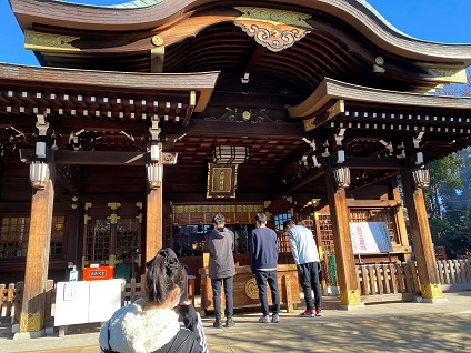 2023年一発目の練習(1/5)は、皆で近所の六郷神社まで初詣に行きました。