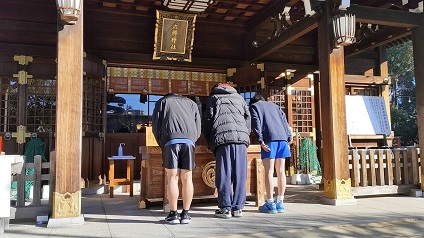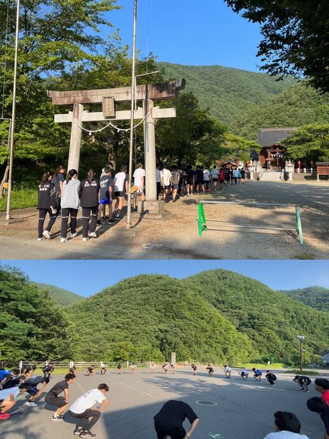 朝練の様子です。近くの神社まで歩いて参拝もしました。合宿以降に詰まっている夏の大会での活躍を、それぞれが願ったことでしょう。