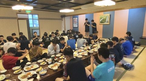 練習だけでなく食事の席でも、お互いの高校同士、交流を深めました。