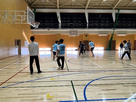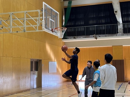 11月24日(金)、12月18日(月)の体育の授業に、大田区のプロバスケットボールチーム「アースフレンズ東京Z」の選手3名とU18のヘッドコーチに来ていただき、一緒にバスケットボールを行いました。