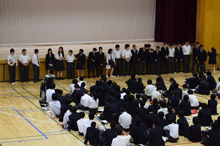 本日5月7日(水)、地震を想定した避難訓練を行い、全校生徒が体育館へ避難しました。生徒たちは落ち着いて行動し、整然と避難できていました。避難後には副校長先生から、東日本大震災の話や、実際に災害が起きたときにどのように行動すべきかといったお話をいただき、防災への意識をさらに高める貴重な機会となりました。