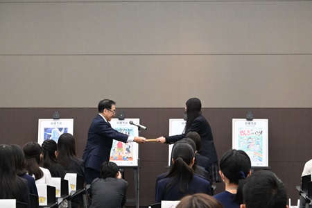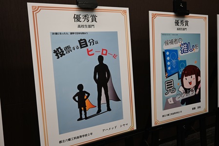 11月27日(水)、「令和6年度東京都明るい選挙ポスターコンクール表彰式」にデザイン工学科2名が出席しました。
