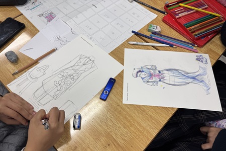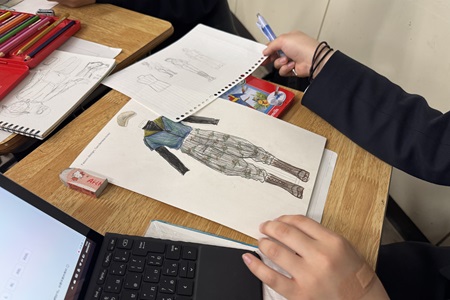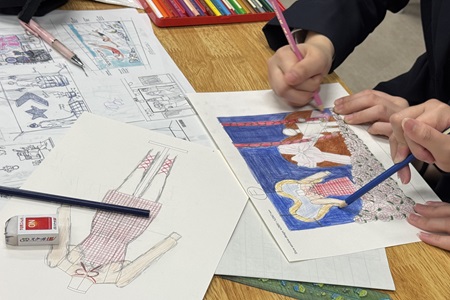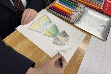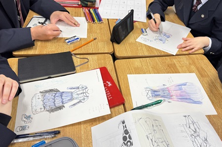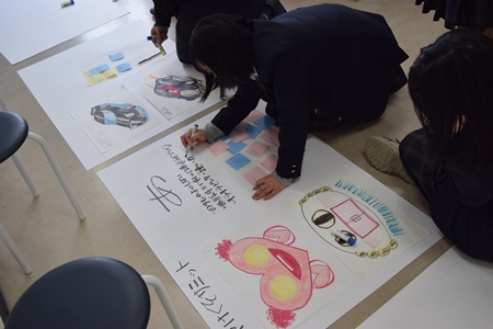 その後、ショーウィンドウを作ることをテーマにしたワークショップを行い、生徒たちは「マネキンのファッション」と「ウィンドウデザイン」を考える担当に分かれて作業しました。生徒からは「実際の仕事を体験できて有意義だった」「グループでの創作活動が楽しかった」といった声が寄せられました。今回の学びを今後の授業や進路選択に活かしてほしいと思います。